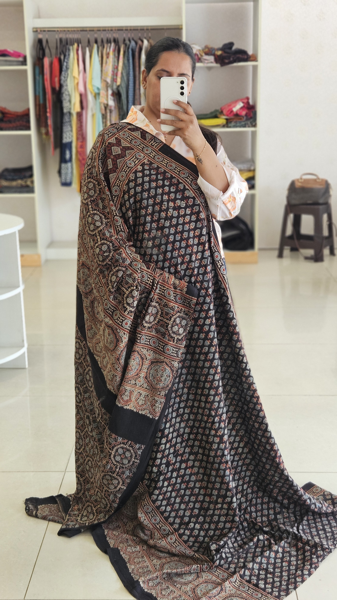 BLACK AJRAKH HANDBLOCK PRINT COTTON SAREE