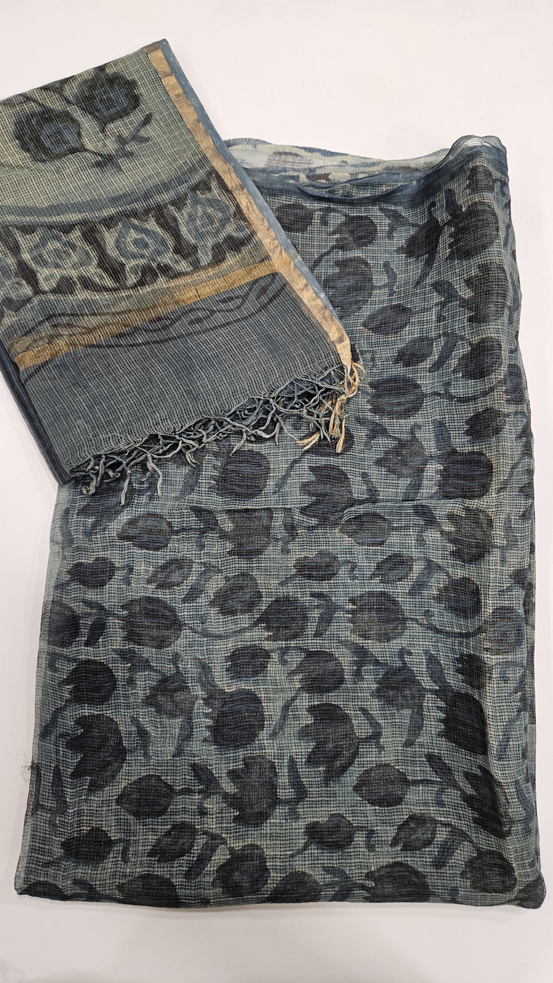 BLUE HANDBLOCKPRINTED KOTA DORIA 2PC SET.