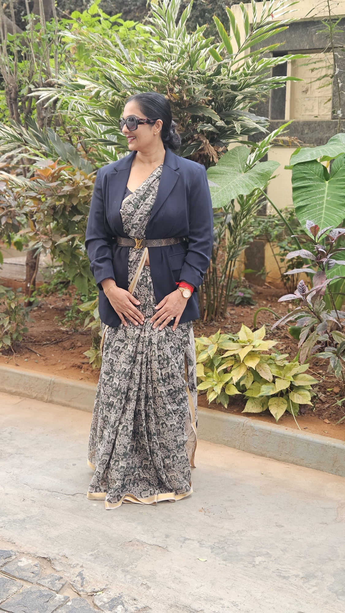 Beautiful kalamkari hand block printed kota cotton saree in green colour with all over prints is the best for office wear and everyday casual wear. very airy and breathable saree.