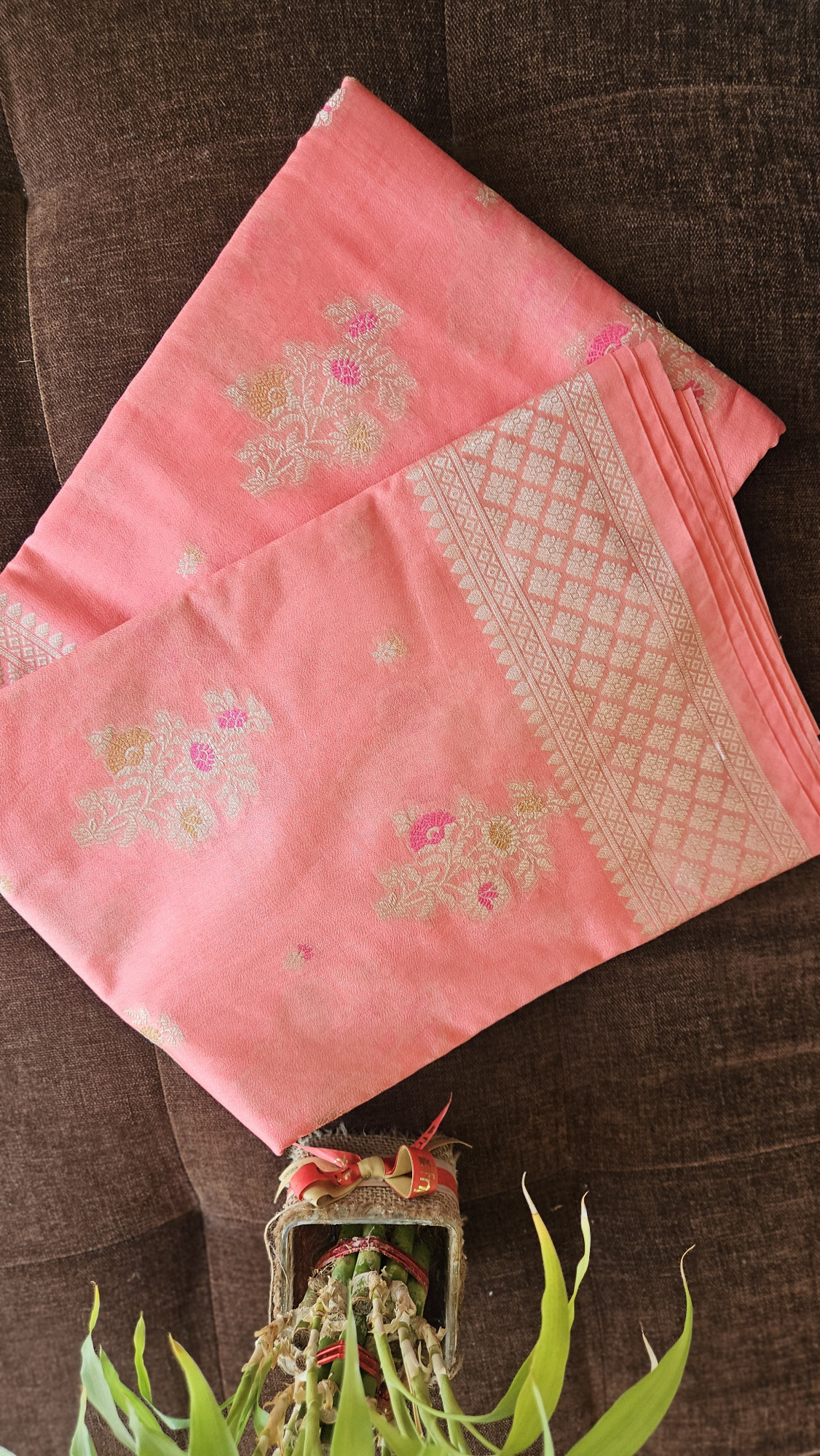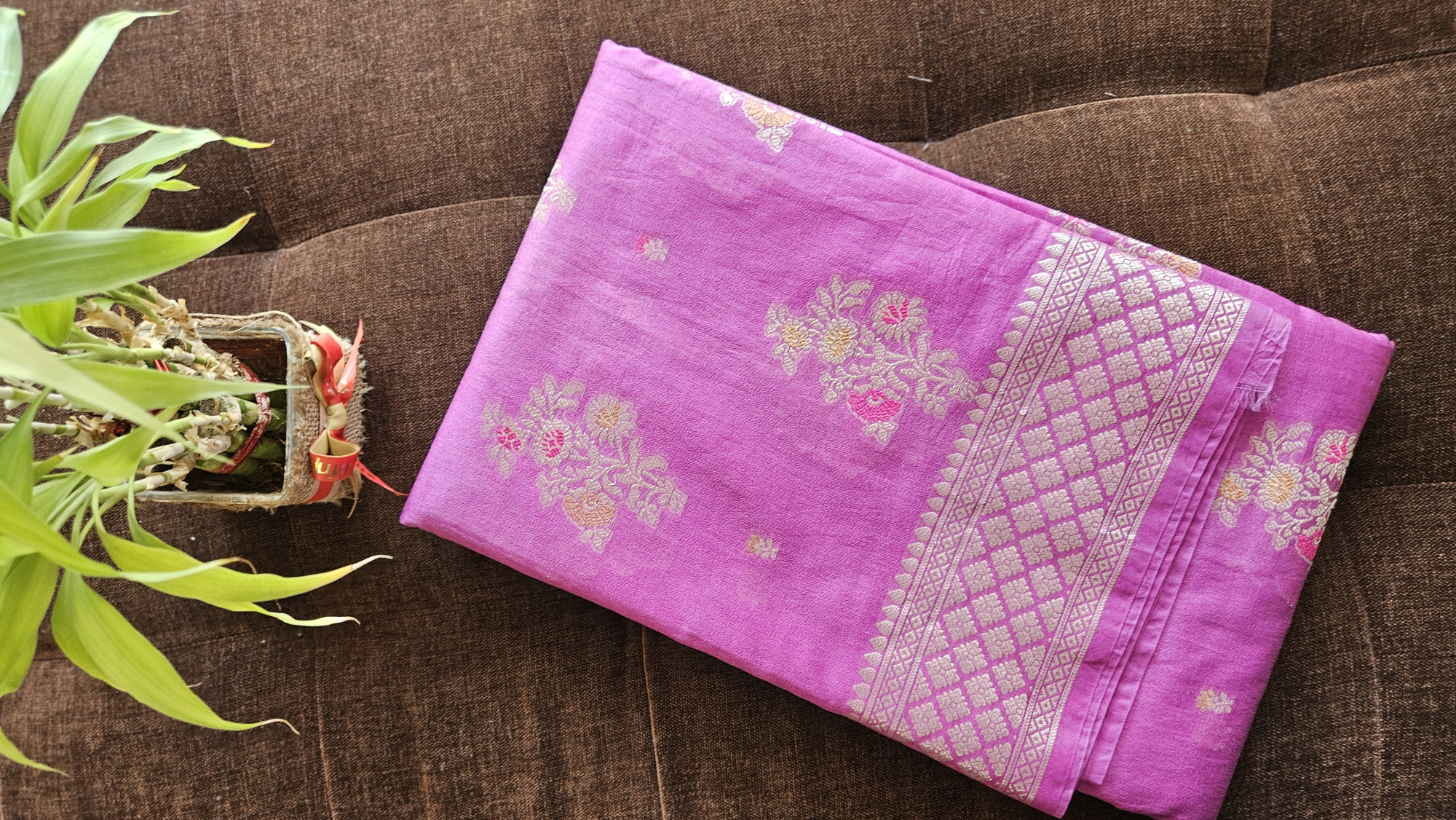 BANARAS SEMI GEORGETTE SAREE, WITH ZARI PALLU.