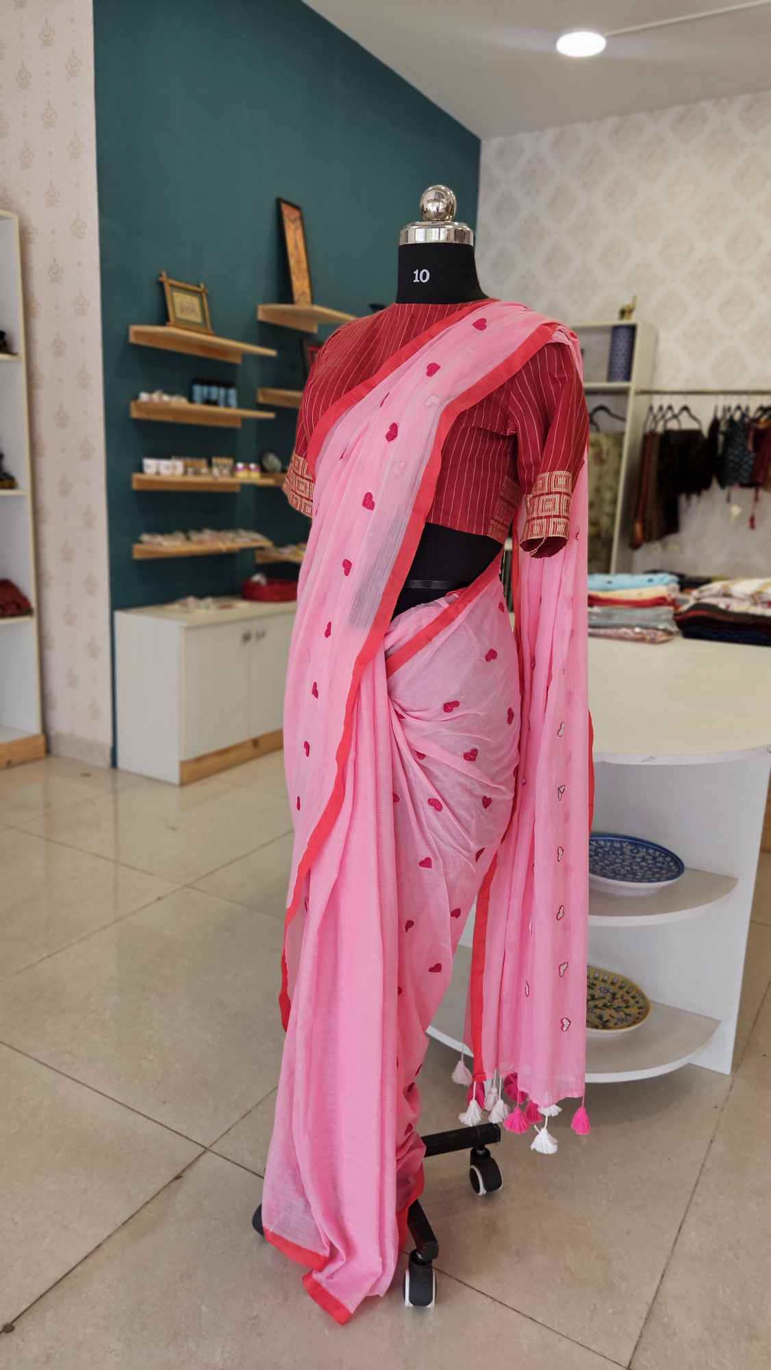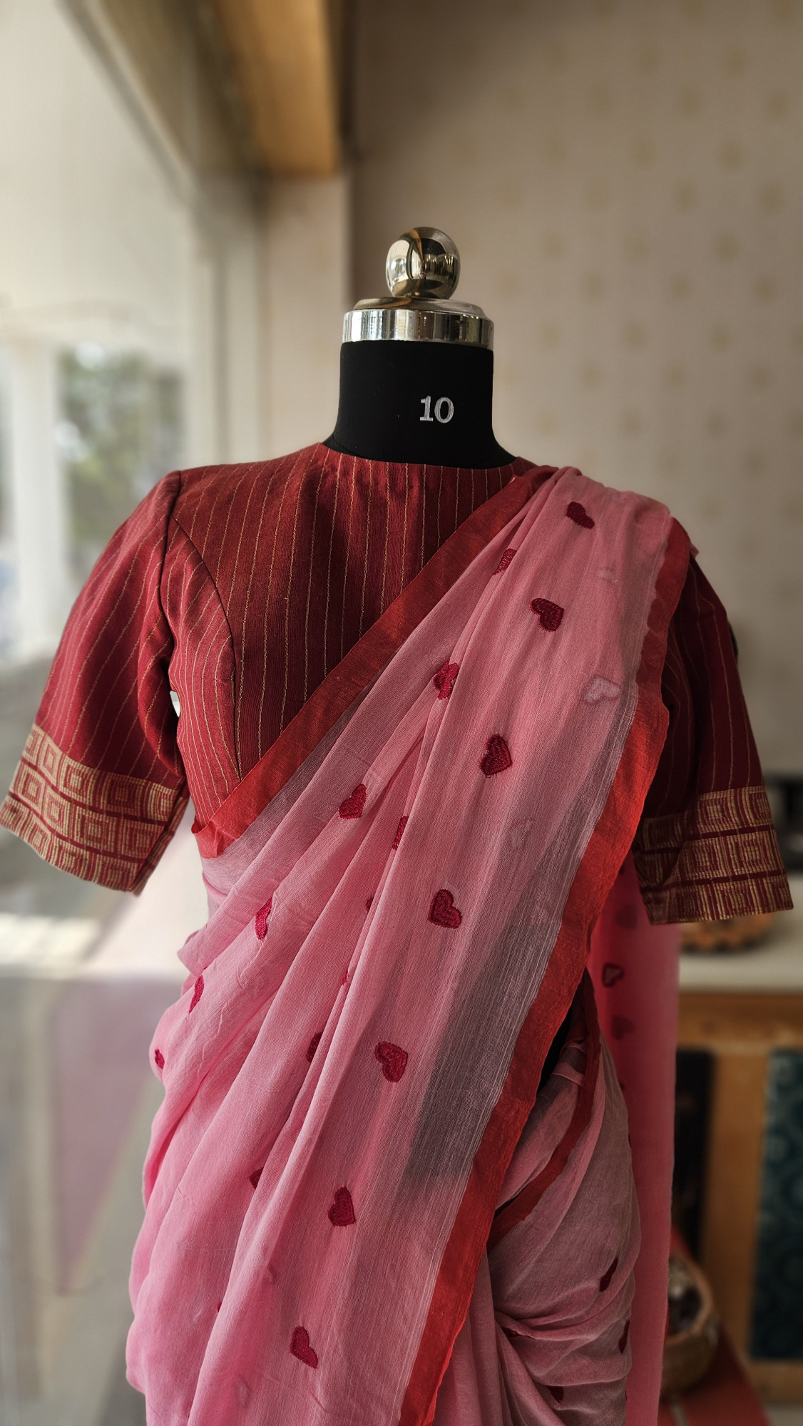 PINK MUL COTTON HEART SAREE