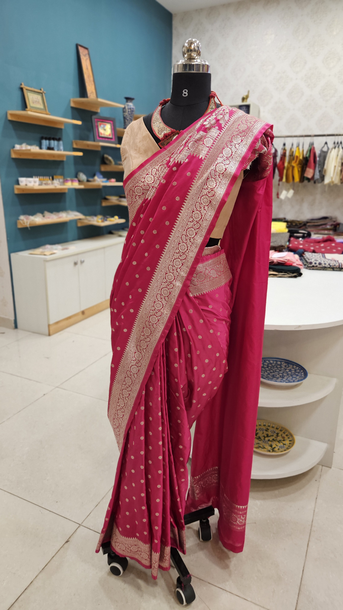 RANI PINK PURE KATAN SILK SMALL BOOTI SAREE