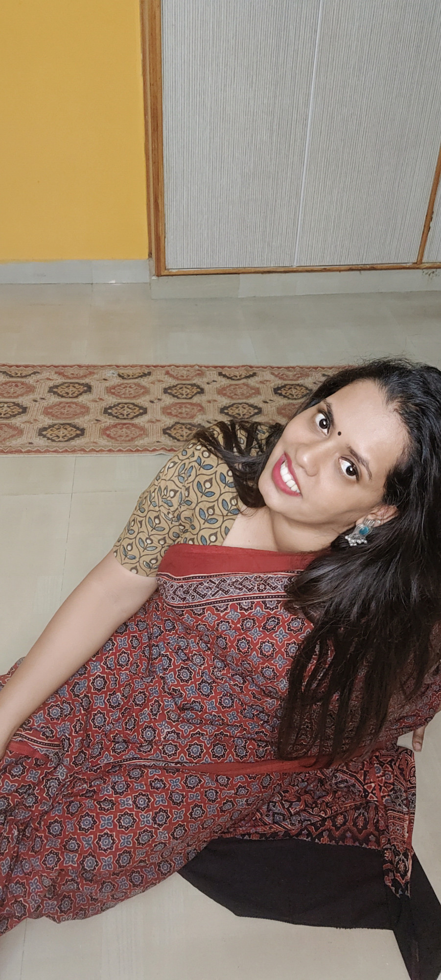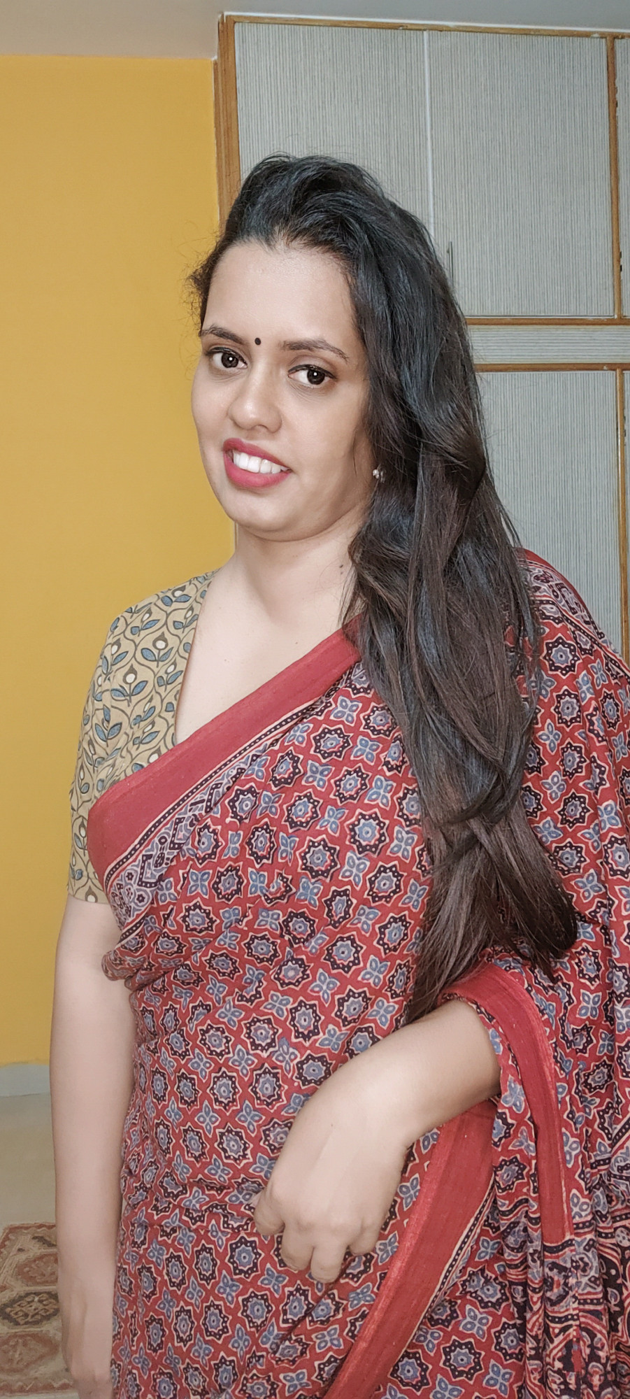 RED AJRAKH HANDBLOCK PRINT COTTON SAREE