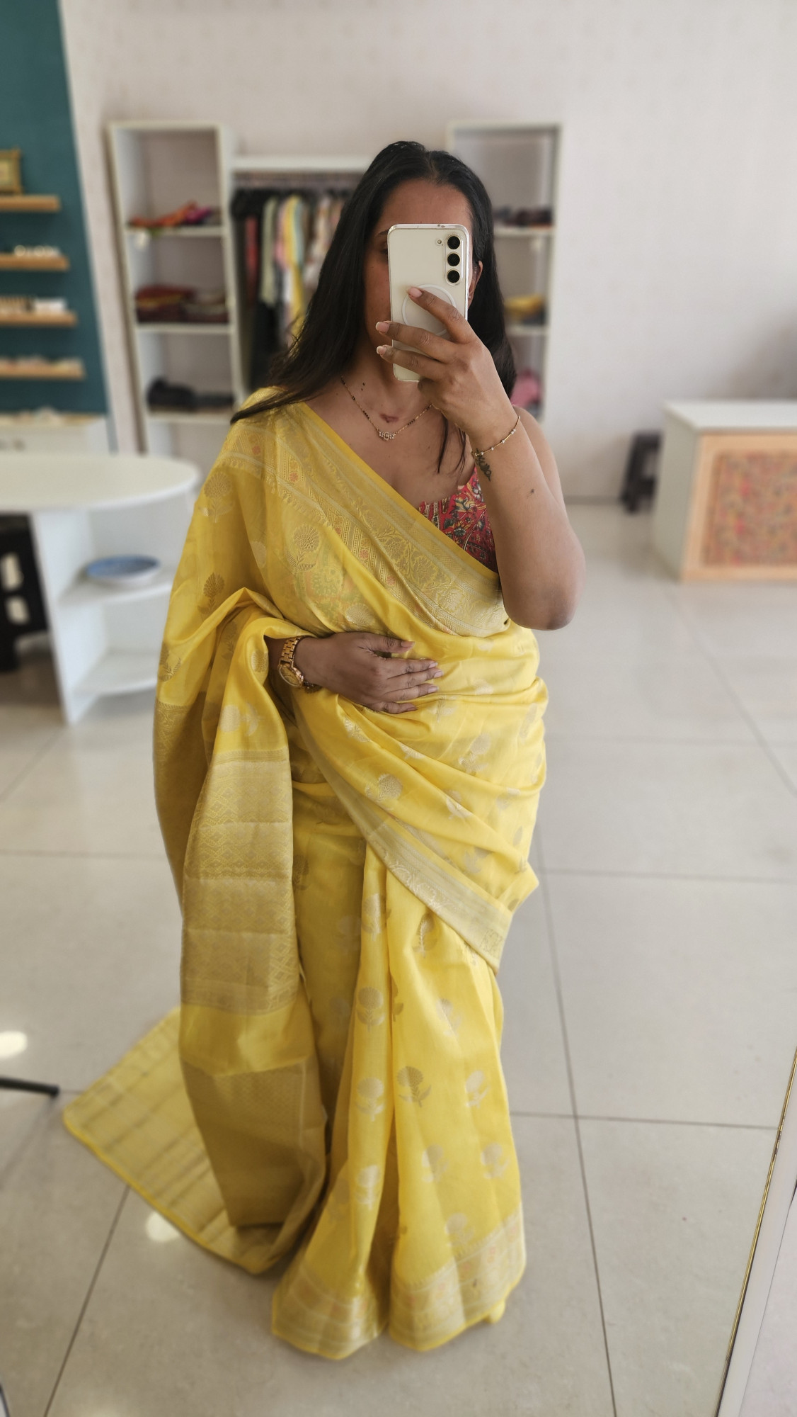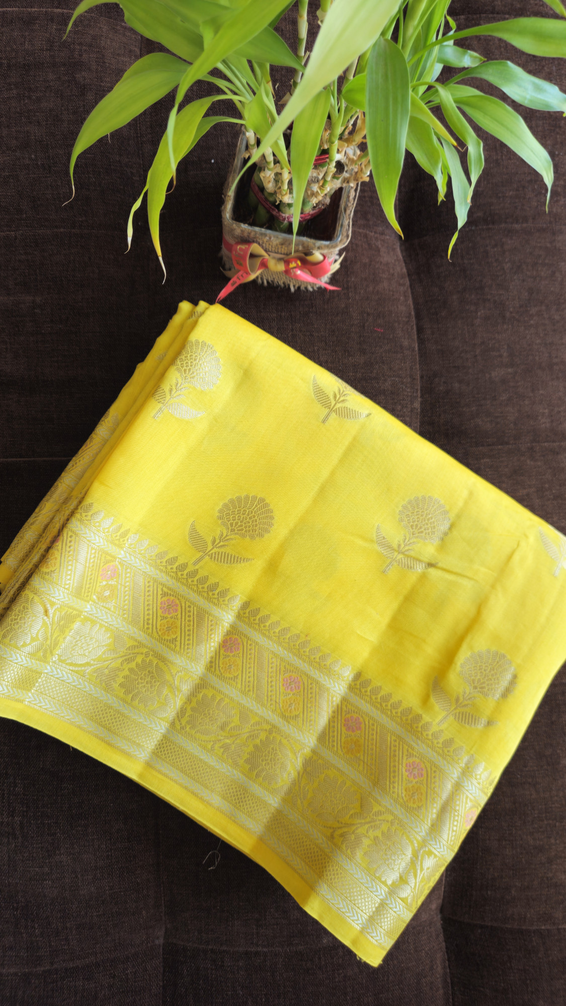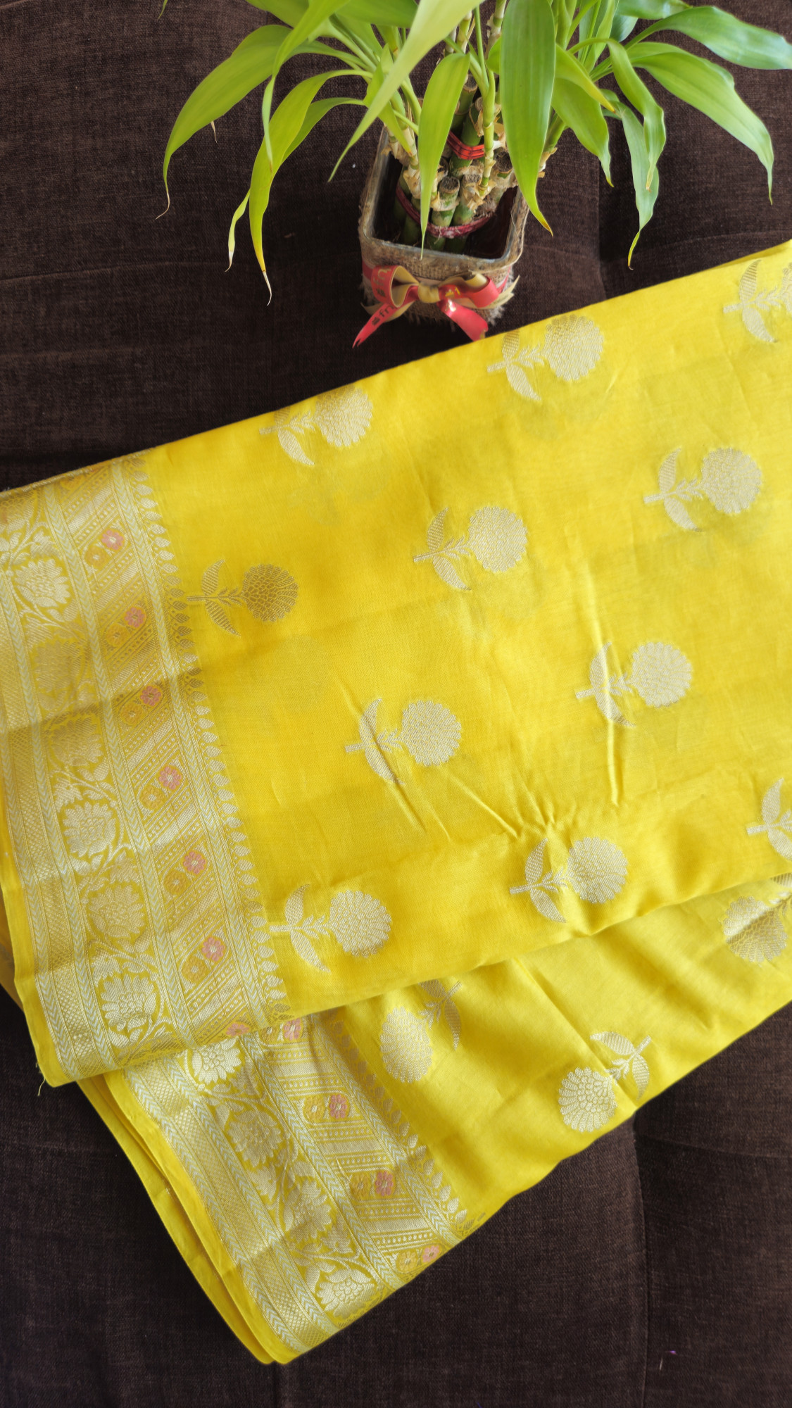 YELLOW PURE BANARASI CHINIYA SILK SAREE.